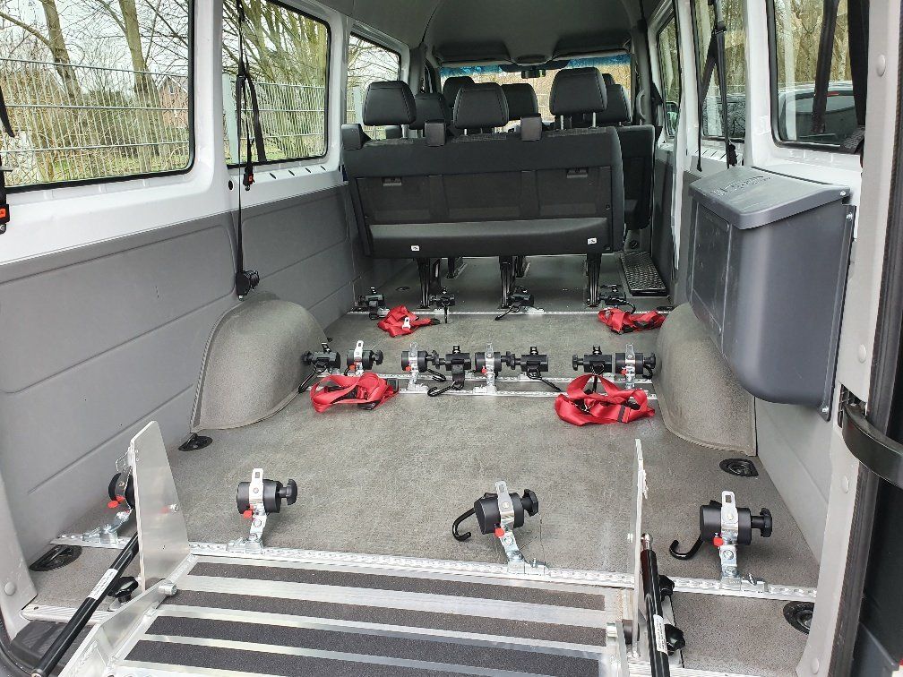 Professionelle Umbauten für Fahrdienste mit Rollstuhlrampe, Aluminiumsystemboden Smartfloor, Linearlift, Rollstuhlplatz , Kopf-Rückenstützen, Trittstufen und allen Rollstuhlrückhaltesystemen erhalten Sie als BTW oder KMP Umbau