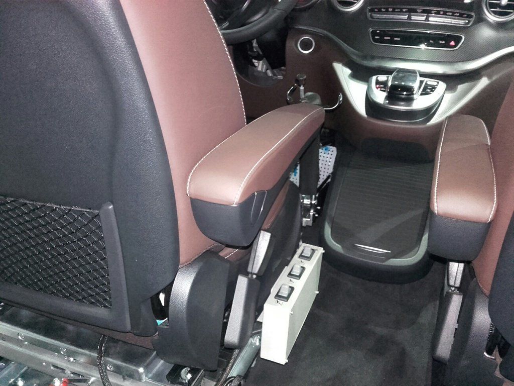 Auf die Konsole kann dann je nach Kundenbedürfnissen der Originalfahrzeugsitz oder auch spezielle orthopädische Sitze z.B. von RECARO oder SCHEELMANN montiert werden, die Sie bei uns in der Ausstellung testen können.