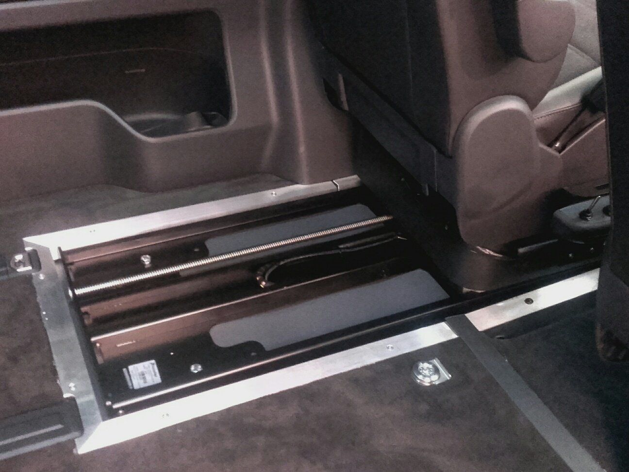 Die meisten 6-Wege Konsolen können auf Wunsch auf dem Originalfahrzeugboden aufgebaut oder auch leicht versenkt im Boden montiert werden um keine störenden Kanten der Konsole zu haben. Hierzu ist eine Bodenvertiefung an der entsprechenden Stelle des Fahrzeugbodens nötig, welche wir ebenfalls hier im Hause ASP durchführen.